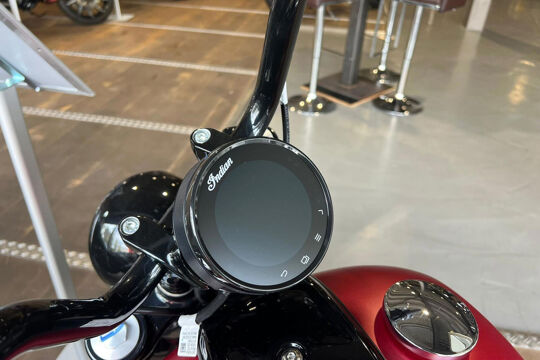 4 inch touchscreen met RIDE COMMAND®. Touchscreen inclusief realtime klok; buitentemperatuur; rijrichting; weergave van audio-informatie; navigatiesysteem met kaartweergave; Bluetooth-status van telefoon en headset; voertuigstatus (spanning, draaiuren motor, olie verversen); voertuiginformatie (snelheid, actieradius, toerental, ingeschakelde versnelling); gegevens actuele rit (afstand, rijtijd, stoptijd, hoogte, hoogteverschillen); dagtellers; rijmodusselectie; helderheid van het scherm; uitlezen van storingscodes van het voertuig.