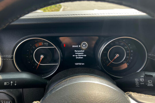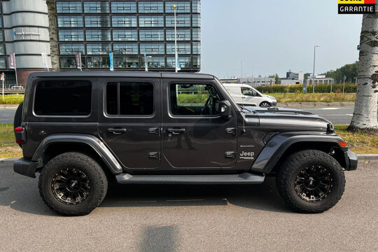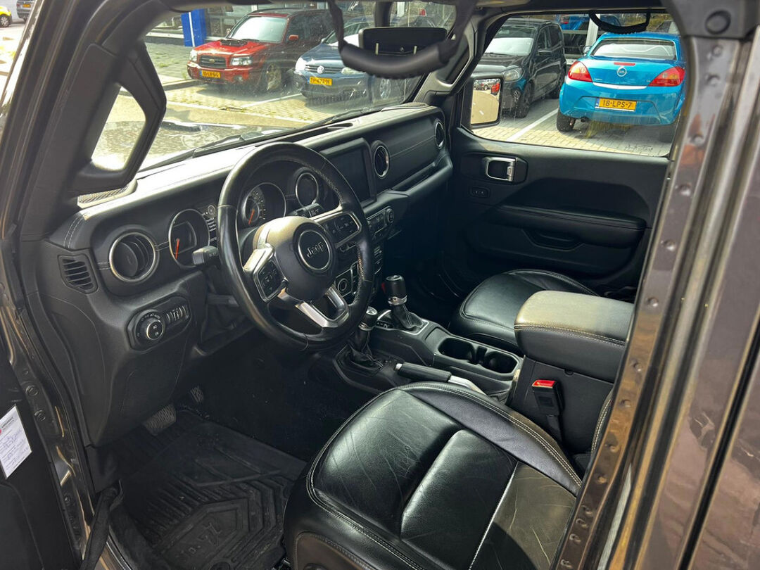 Mooie jeep Wrangler 2.2D Sahara uit 2019 staat nu op grijs kenteken. terug zetten naar geel kenteken is mogelijk waaronder het lederen interieur met stoelen op de achterbank en originele wielen.
