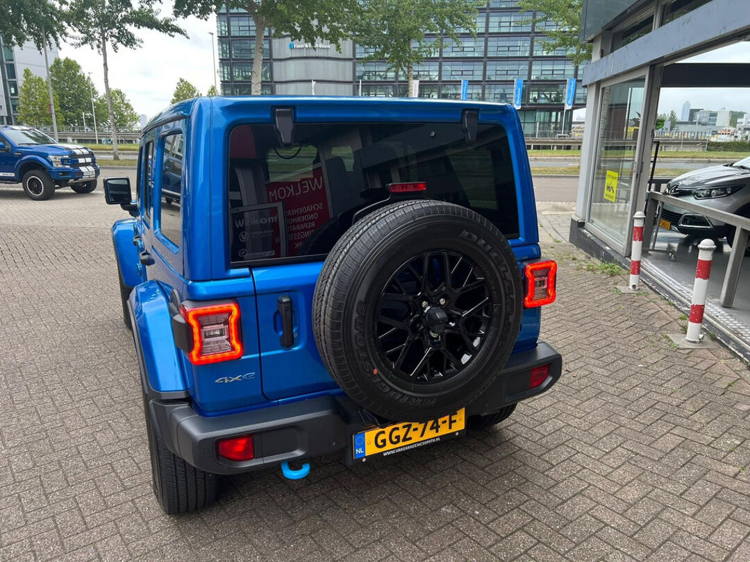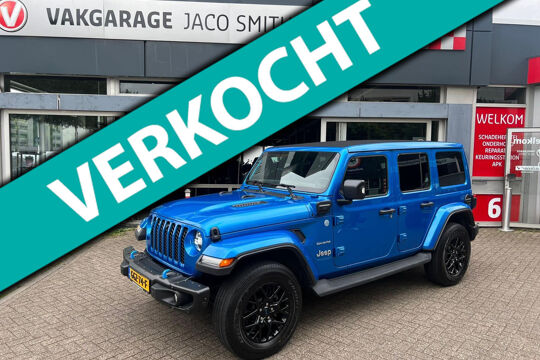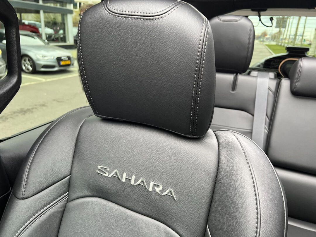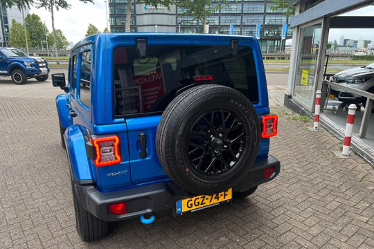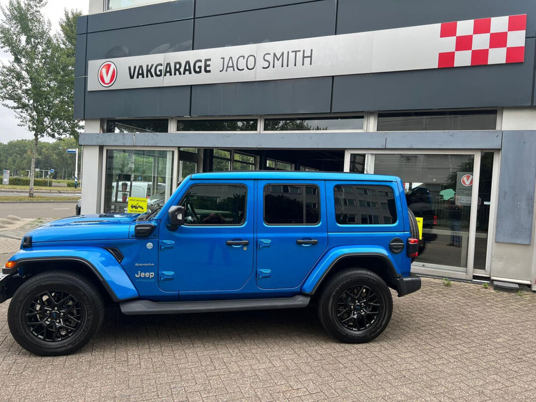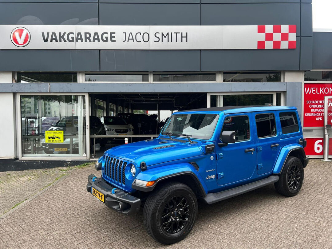 Uniek met open cabrio dak , lederen bekleding , navigatie , getint glas . Niet van nieuw te onderscheiden Jeep Wrangler 4Xe 380 Sahara Sky-one HYBRIDE.