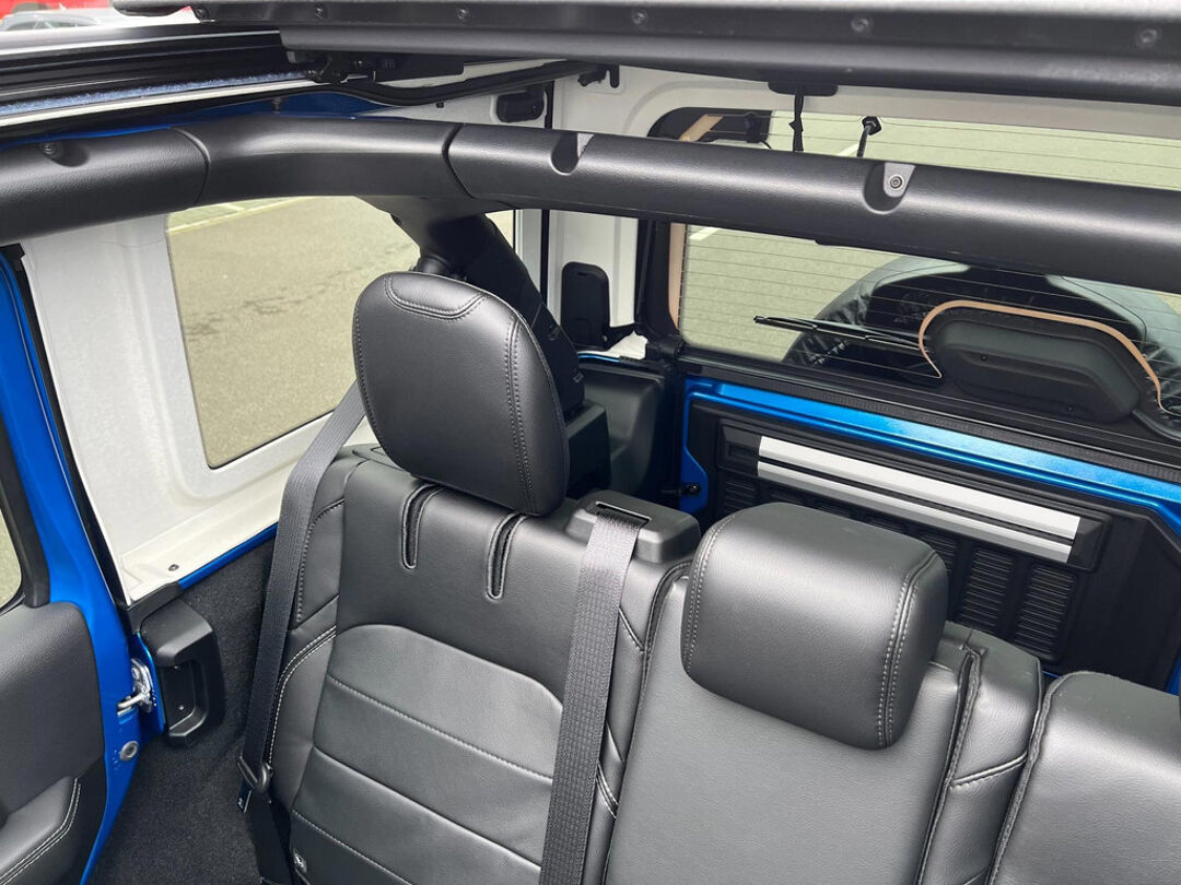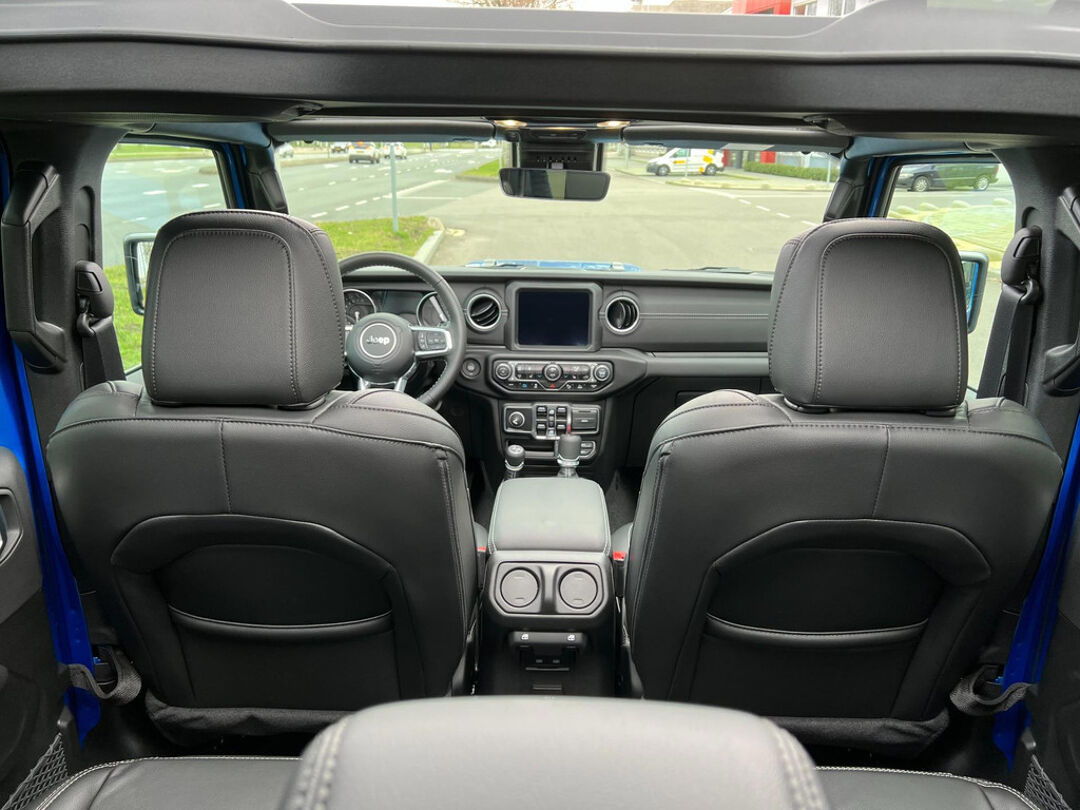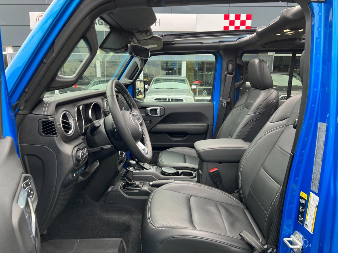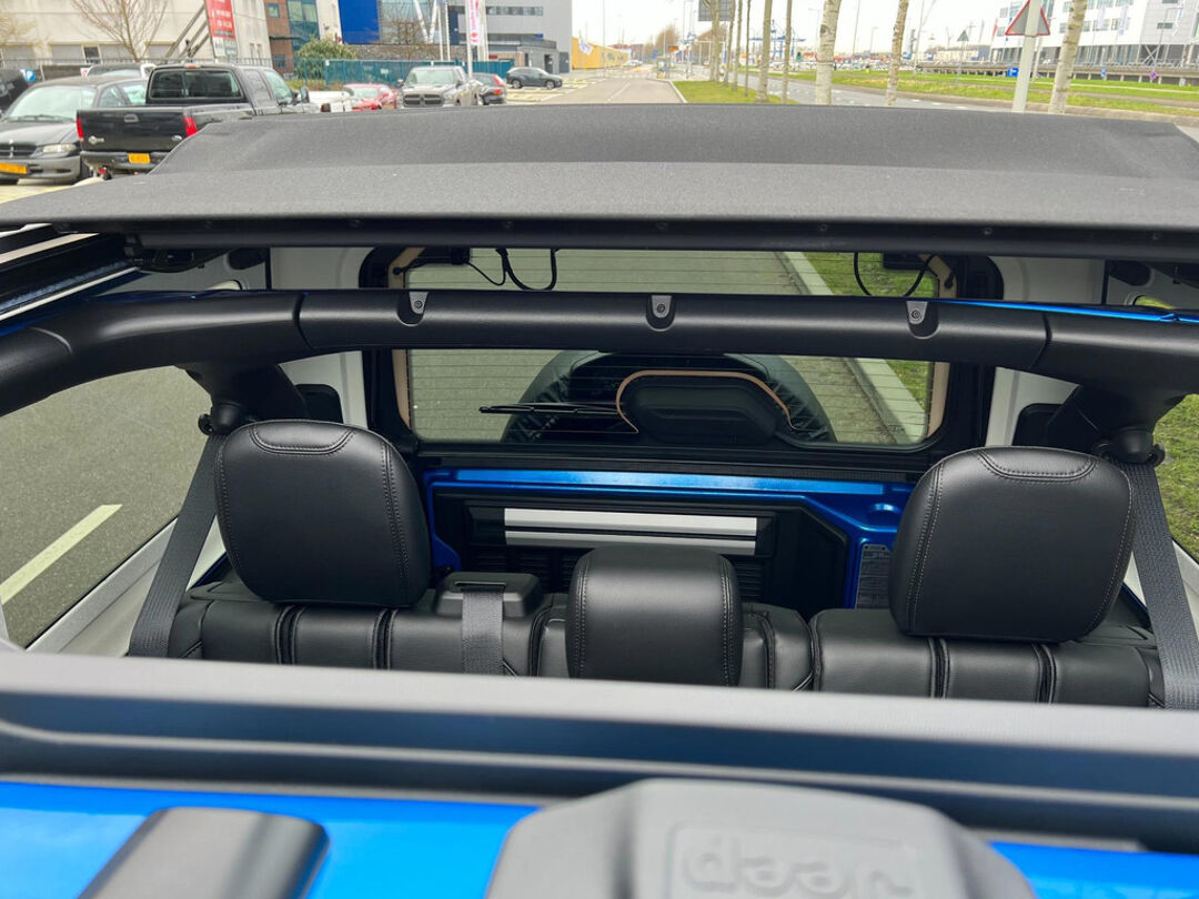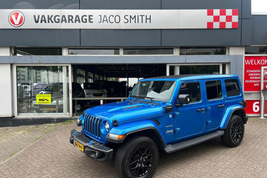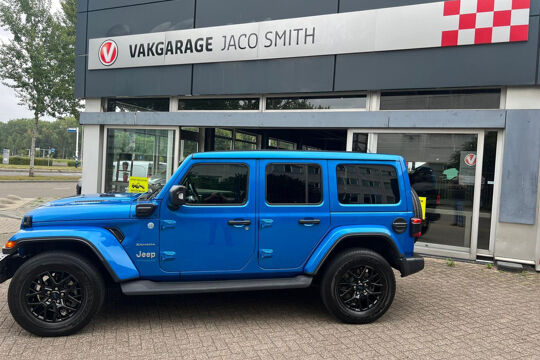 Uniek met open cabrio dak , lederen bekleding , navigatie , getint glas . Niet van nieuw te onderscheiden Jeep Wrangler 4Xe 380 Sahara Sky-one HYBRIDE.