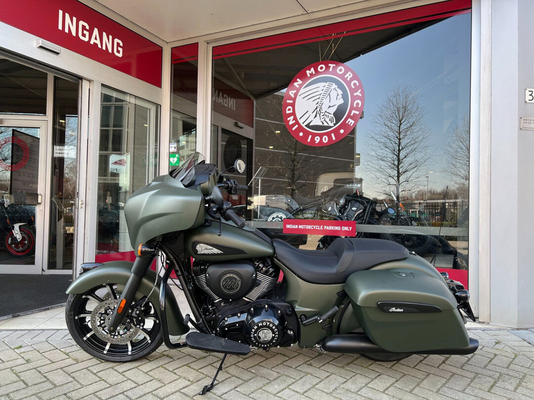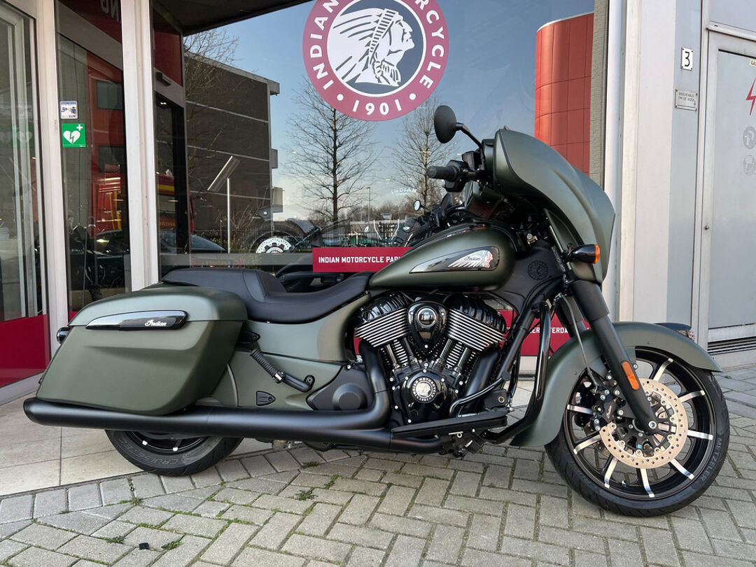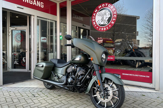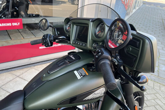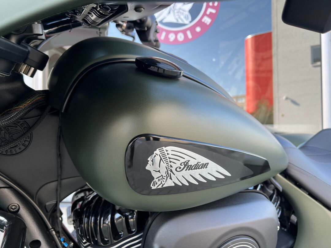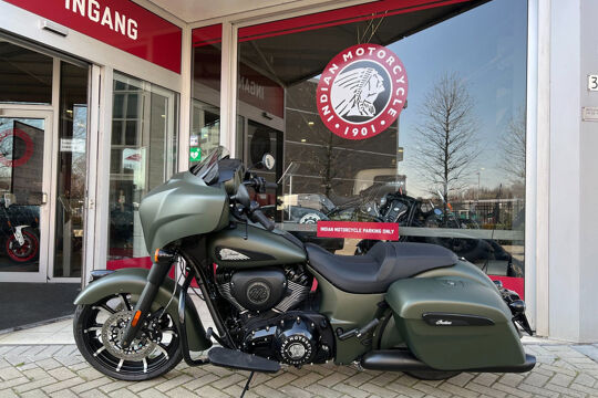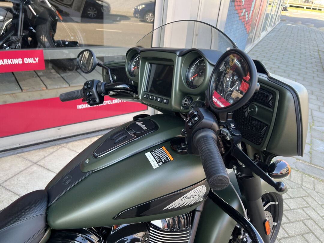 NOG NIET INGEREDEN en als nieuw . CHIEFTAIN DARK HORS in de kleur Sagebrush Smoke . luchtgekoelde Thinderstroke 116'' met navigatie , apple car play , rijmodus , elektrische ruit etc.