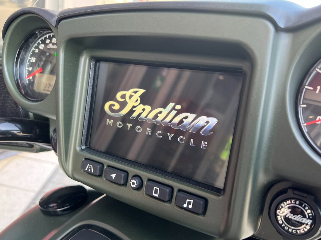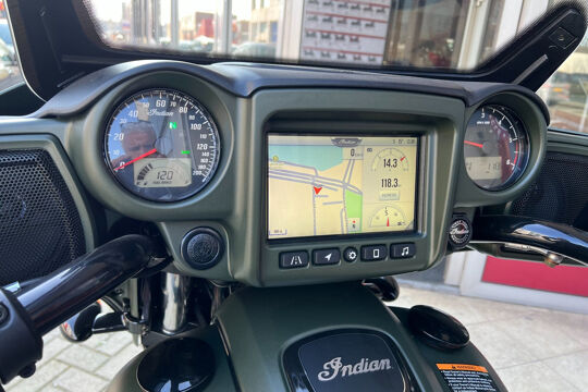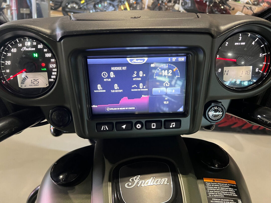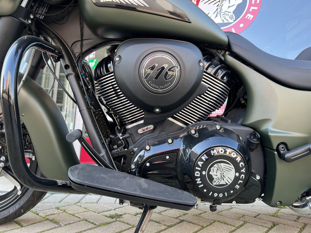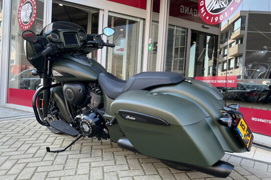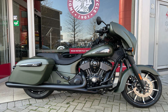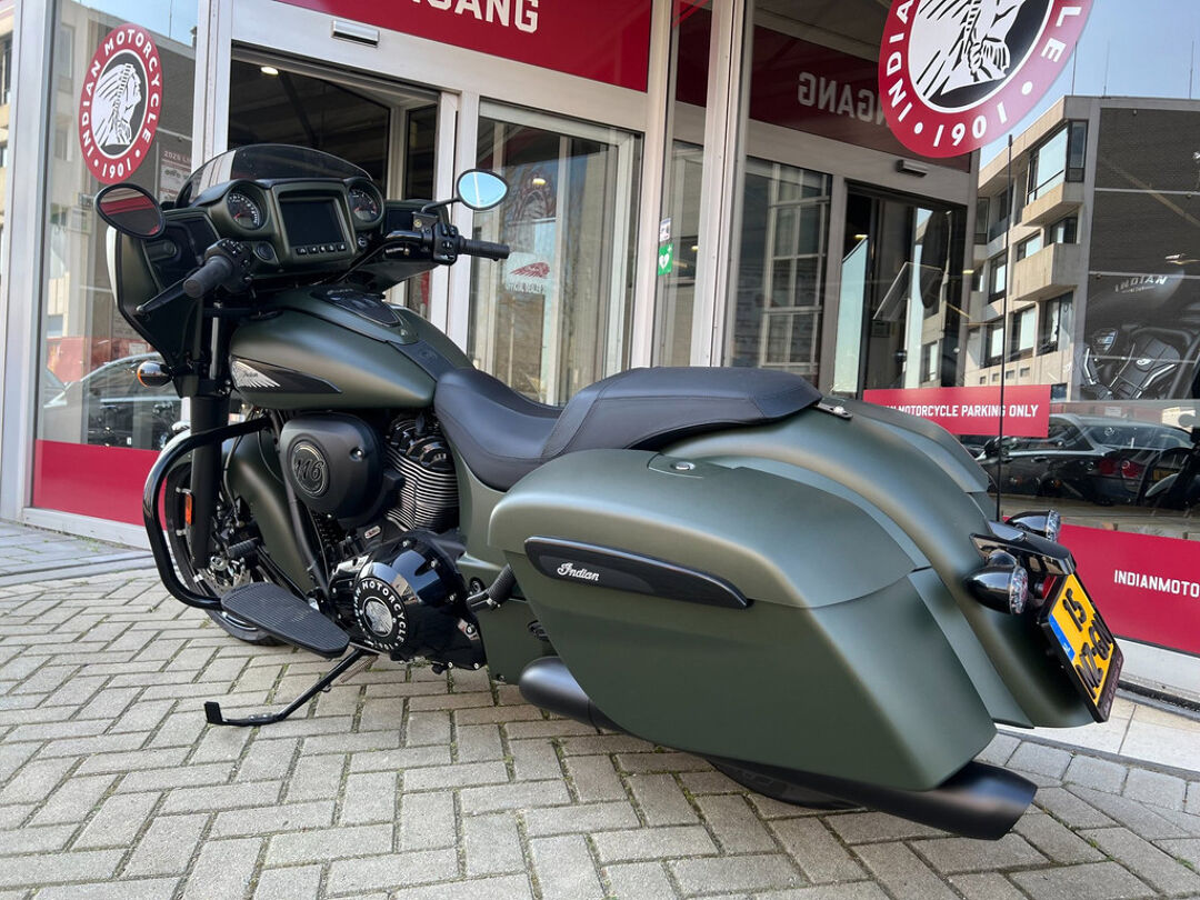 NOG NIET INGEREDEN en als nieuw . CHIEFTAIN DARK HORS in de kleur Sagebrush Smoke . luchtgekoelde Thinderstroke 116'' met navigatie , apple car play , rijmodus , elektrische ruit etc.