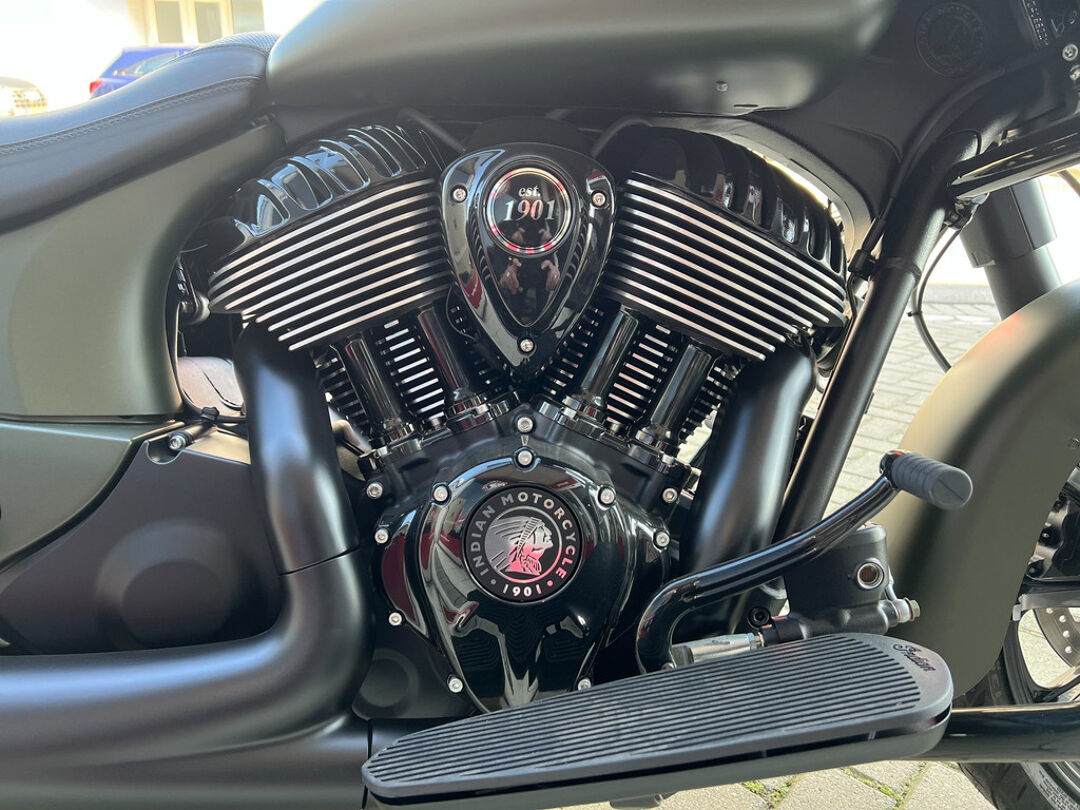 De Chieftain Dark Horse wordt standaard geleverd met LED-verlichting, sleutelloos starten, cruise control, elektrisch afsluitbare zadeltassen, ABS en bandenspanningscontrole.
