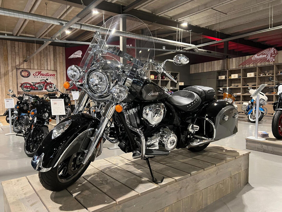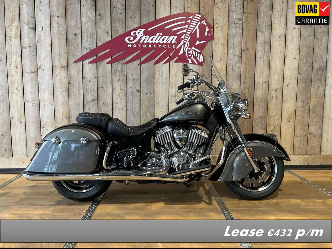 Indian Springfield motorfiets. Ideaal voor twee personen. Deze motorfiets heeft een premium lederen dubbelzits zadel, sleutelloos starten en een geweldig chrome uitvoering.